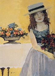 夏俊娜雖然年輕,不過其創作卻擁有鮮明成熟的個人風格。她的繪畫帶有一股濃厚的異國情調,而其豐富精巧的用色則摻雜著一份詩意的裝飾和女性的溫婉。這幅繪於一九九八年的《約定》,以她喜歡的少女與花為創作主題,在濕潤朦朧的水彩中畫出一個捧花的女孩。夏俊娜曾經解釋這種對於面貌模糊化的處理,是為了避免太過清楚搶眼的臉龐會讓觀眾忽略畫面的整體感覺。這幅水彩畫《約定》,不論在題材和形式上都是呼應畫家所提及的創作態度:「我需要一種無序的、感性的、朦朧的、溫暖的、女性化的感覺,鮮花和少女可以滿足我的需求。」而少女與花除了是畫家呈現美麗景象的元素外,其實還托寓著她個人的感悟和心境。